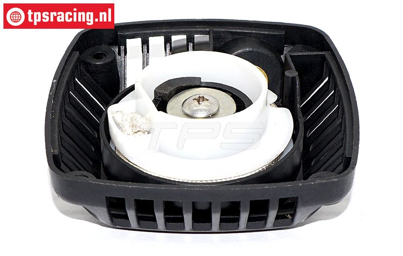 - Draai het geheel nu 5 tot 6 keer 360 graden linksom zodat de veer weer op spanning staat en het trekstarter handvat terug komt. (Foto 7)